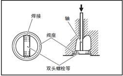 將螺栓等焊接在閥座上,用軸棒從三菱S6R柴油發動機氣缸頭上面插入三菱S6R柴油發動機氣閥門導管孔內打擊,拆出閥座。