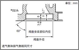 (1) 在安裝閥座前,先要測量三菱S6R柴油發動機氣缸頭的閥座安裝部位的內徑和閥座的外徑,確認過盈量是否在標準值內。超出標準值范圍時,使用加大尺寸的閥座。三菱S6R柴油發動機氣缸頭的閥座安裝部位的內徑超過極限值時更換新的三菱S6R柴油發動機氣缸頭。
