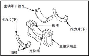 (3) 在最后端三菱S6R柴油發(fā)動(dòng)機(jī)主軸承瓦端蓋的定位銷位置安裝推力片( 下)。