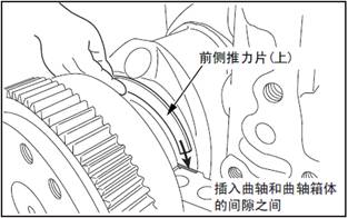 (2) 前側(cè)推力片( 上)的油槽面朝發(fā)動(dòng)機(jī)的前側(cè),在三菱S6R柴油發(fā)動(dòng)機(jī)曲軸和三菱S6R柴油發(fā)動(dòng)機(jī)三菱S6R柴油發(fā)動(dòng)機(jī)曲軸箱的空隙之間插入前側(cè)推力片( 上)。