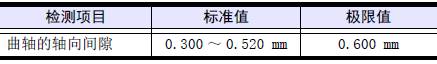下圖為三菱S6R柴油發(fā)動(dòng)機(jī)曲軸的軸向間隙檢測項(xiàng)目與技術(shù)規(guī)格