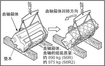 將三菱S6R柴油發(fā)動(dòng)機(jī)三菱S6R柴油發(fā)動(dòng)機(jī)曲軸箱放置在回轉(zhuǎn)臺(tái)上翻轉(zhuǎn)。不使用回轉(zhuǎn)臺(tái)時(shí),在三菱S6R柴油發(fā)動(dòng)機(jī)三菱S6R柴油發(fā)動(dòng)機(jī)曲軸箱上掛上鋼絲索,在鋼絲索和三菱S6R柴油發(fā)動(dòng)機(jī)三菱S6R柴油發(fā)動(dòng)機(jī)曲軸箱體之間填入墊木或布,用起吊機(jī)吊起,然后橫倒放置在枕木上。重新掛鋼絲索,在枕木上將三菱S6R柴油發(fā)動(dòng)機(jī)三菱S6R柴油發(fā)動(dòng)機(jī)曲軸箱體翻轉(zhuǎn)恢復(fù)常規(guī)放置狀態(tài)。