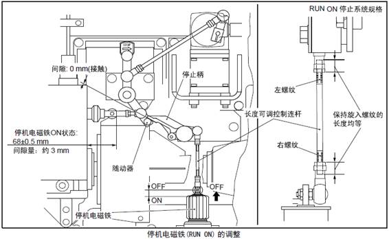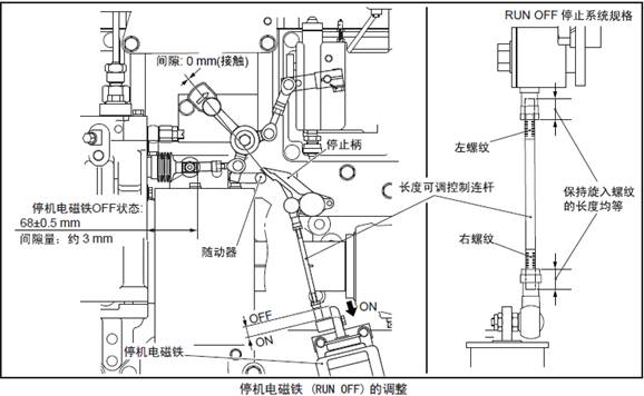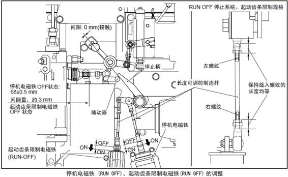 3.3.3 停機電磁鐵(RUN OFF)、起動齒條限制電磁鐵(RUN OFF) 的調(diào)整