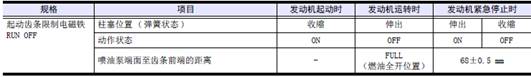 確認(rèn)發(fā)動機起動時、運轉(zhuǎn)時、緊急停止時的各電磁鐵的動作和噴油泵齒條的位置。