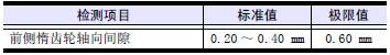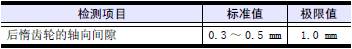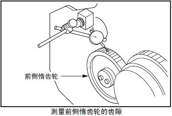 測量前側惰齒輪的齒隙,將千分表的表頭放置在齒輪節圓的圓周線上,與齒面垂直接觸,測量齒隙量,或在各齒輪的嚙合部分插入厚薄規進行測量。超過極限值時更換新的齒輪。