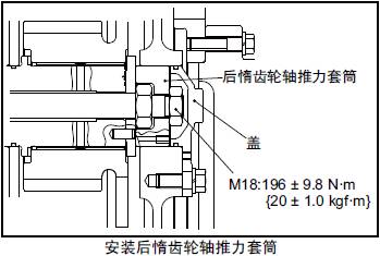 (1) 在三菱S12柴油發動機三菱S12柴油發動機后三菱S12柴油發動機惰齒輪軸三菱S12柴油發動機推力套筒上涂抹油脂,插入三菱S12柴油發動機缸體體內。這時,注意裝配記號"TOP" 要在最上方。另外,按照拆卸時作的識別記號安裝。