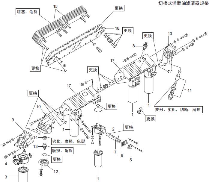 潤滑油濾清器、潤滑油濾清器報警器、釋放閥、左側潤滑油冷卻器的解體、檢修