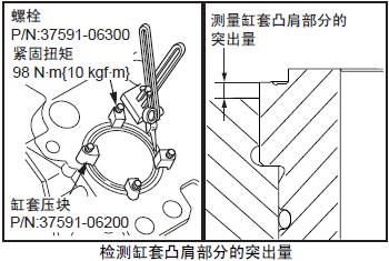 檢測要領參考「三菱R16柴油發動機本體的組裝」的「檢測三菱R16柴油發動機缸套凸肩部分的突出量」項。