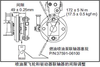 (3) 確認(rèn)塞規(guī)的NO GO側(cè)插不進(jìn),然后再次將GO側(cè)插入進(jìn)行確認(rèn)。此狀態(tài),噴油泵三菱R16柴油發(fā)動(dòng)機(jī)飛輪和驅(qū)動(dòng)器聯(lián)軸器之間的間隙作為設(shè)定值。
