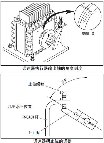 調(diào)速器執(zhí)行器輸出軸的角度刻度「0」( 不噴油位置)時(shí),旋入止位螺栓至調(diào)速器柄的上面相接觸并鎖緊。