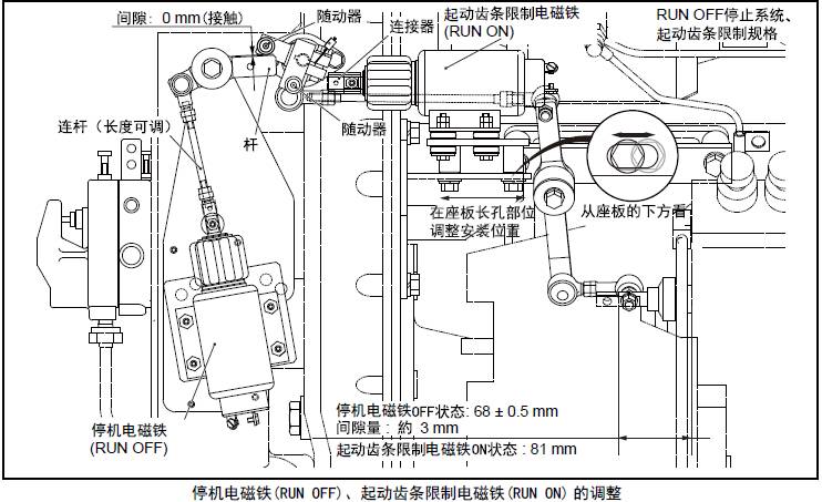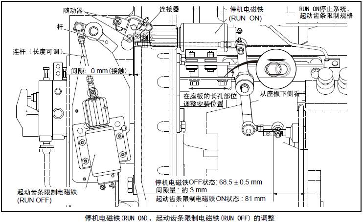 3.3.6 三菱S16柴油機(jī)停機(jī)電磁鐵(RUN OFF)、起動(dòng)齒條限制電磁鐵(RUN ON) 的調(diào)整