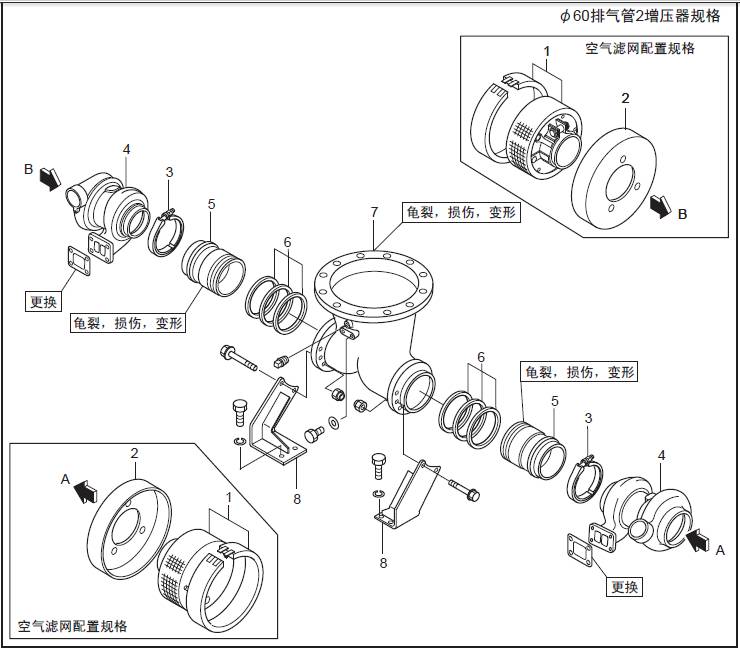 1 聯軸器2 饒性管 3 排氣歧管