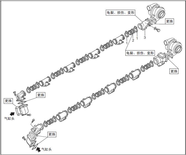 三菱R16柴油發動機靜壓排氣管規格 排氣歧管的拆卸、檢測