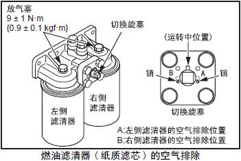 (3) 從放氣塞處排出的燃油不含有氣泡時,按照規定扭矩旋緊放氣塞。