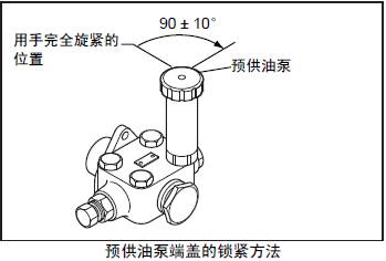 預供油泵的端蓋不夠旋緊的話,內部的螺紋會受三菱R16柴油發動機的振動而磨損,引起預供油泵的端蓋飛出或燃油的外溢。相反,如果預供油泵的端蓋擰得過緊會引起預供油泵的頭部破損。因此,必須按照適當的角度旋緊。