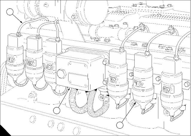 Renew the canisters of the lubricating oil filter and the rotor of the by-pass filter (2)