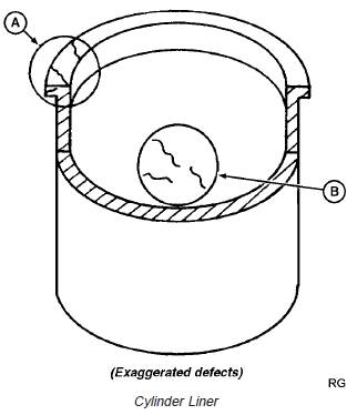 2. Visually inspect liner ID. Replace piston and liner if: