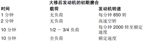 2. 起動John Deere約翰迪爾強鹿柴油發動機。按照下表規定的負荷和轉速運行到規定時間。