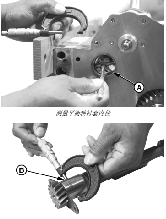 檢查和測(cè)量John Deere約翰迪爾強(qiáng)鹿柴油發(fā)動(dòng)機(jī)平衡軸襯套和軸頸