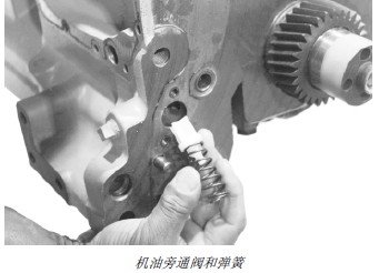 2. 拆卸下惰輪和油泵齒輪(圖中所示為拆卸后的情況)。