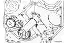 注: 如果安裝新的機油泵,確保齒輪的側隙正確。