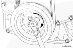 安裝曲軸皮帶輪。此時不要將螺釘擰緊到規定的扭矩值。