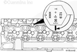 使用清潔的康明斯ISB5.9 G CM2180發動機機油潤滑 12-mm 軸座/缸蓋螺釘的螺紋和螺釘頭以下的部分。