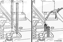 轉動螺釘直到在缸蓋上做的標記進入螺釘頭的“窗口”中。