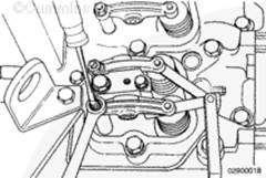 小心地將缸蓋直放于缸體上,并使它座入定位銷中。