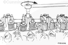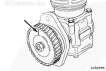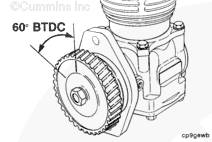使用 1/2 英寸驅動頭和康明斯ISB5.9 G CM2180發動機盤車工具(零件號 3824591)旋轉康明斯ISB5.9 G CM2180發動機(順時針,面對減振器),直到 6 號氣缸(針對 6 缸康明斯ISB5.9 G CM2180發動機)的進氣搖臂開始打開進氣門。