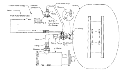 1) 使用壓縮空氣驅動空氣馬達,從而帶動啟動馬達齒輪和發動機飛輪轉動