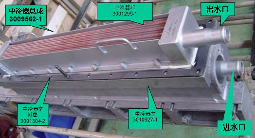 卻水流經中冷器芯與增壓后的空氣進行熱交換,從