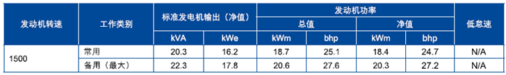 注:上表所有額定功率數(shù)據(jù)均為IS0 8528/1、IS0 3046/11986、BS 5514/1條件下的發(fā)動機性能。在其他條件下工作時,性能可能降低。有關(guān)上述條件以外工作的數(shù)據(jù),請向Perkins公司咨詢。Perkins提供的發(fā)電機輸出功率為標準數(shù)據(jù),并根據(jù)標準交流發(fā)電機效率及0 8功率因數(shù)(cos. e)確定。燃料規(guī)格:BS 2869: Part 2 1998 Class A2或ASTM D975 D2額定功率定義:常用功率:取代主電網(wǎng)時,以可變載荷模式工作下可提供的功率。每工作12小時可允許1小時1 00r6過載工作。備用功率(最大):于主電網(wǎng)出現(xiàn)故障時,以可變載荷模式工作下可提供的功率。不允許過載工作。