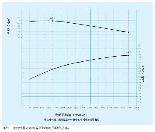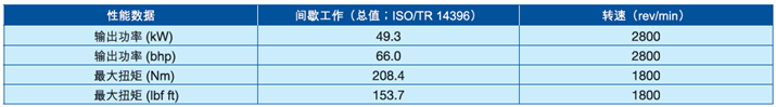 于2800 rpm時(shí),功率達(dá)49.3 kW,66.0 bhp