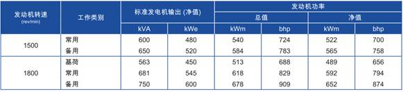 功率:于1500 rev/min時,565kWm