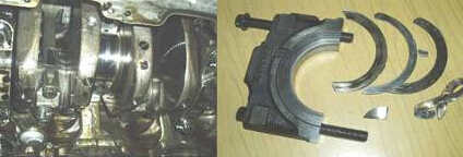 造成此故障的現象:拆解發動機油底殼時,發現有已經扭曲的曲軸止推瓦破裂脫落的瓦邊,拆下4缸軸承蓋,發現曲軸止推瓦破碎裂,導致磨壞曲軸和缸體軸承座及軸承蓋的前端面,并打壞缸套。 造成此故障的原因分析:主要原因是用戶在更換變速箱時(“大同”更換成“陜齒”變速箱),由于一軸尺寸不一樣,導致更換上去后,曲軸承擔了軸向向前的推力,造成第四止推瓦磨損。 此故障的維修解決方法:更換缸體、曲軸及相關損壞件。具體圖片如下: