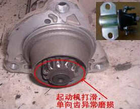 造成此故障的現象:起動機空轉,發動機無法啟動 造成此故障的原因分析:起動機繼電器損壞、單向齒磨損或飛輪齒環磨損 此故障的維修解決方法:更換相關損壞件