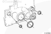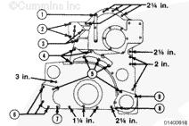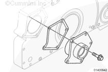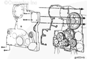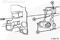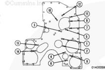 安裝康明斯KTA柴油發(fā)動(dòng)機(jī)齒輪室蓋和相關(guān)部件。參考步驟 001-031。