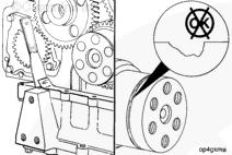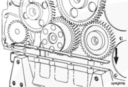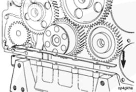使用曲軸旋轉(zhuǎn)發(fā)動(dòng)機(jī),直至凸輪軸齒輪和曲軸齒輪上的指示標(biāo)記彼此相對。