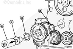 將康明斯KTA柴油發動機水泵惰輪舊活塞銷和 K19 缸蓋螺釘作為滑錘 (37) 使用。