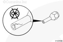 安裝活塞冷卻噴嘴時要小心。活塞冷卻噴嘴的任何損壞都會造成發動機的嚴重損壞。