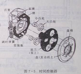組成:缸筒、活塞、大小凸輪、法蘭園盤受電磁閥控制的油壓大小、活塞位置發生改變通過活塞上的銷帶動凸輪偏轉帶動法蘭偏轉一定角度實現噴油提前調節。