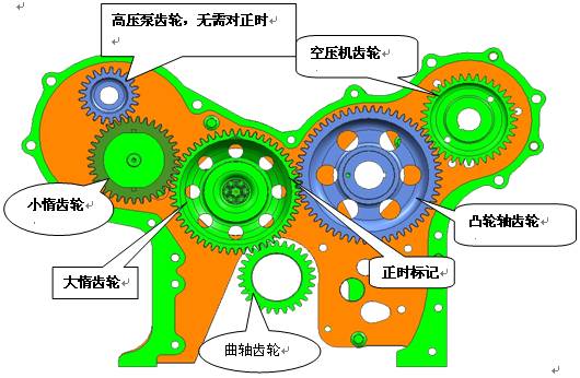 電控柴油發(fā)動(dòng)機(jī)齒輪間隙及記號對正: