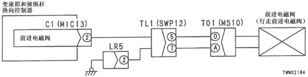 1)2檔R電池閥故障 2)變速箱和操縱桿控制器C1(雌)(10)-TL1(2)-T01(G)之間線束與電源短路,與機箱接地短路,觸點有故障或斷開 3)機箱-TL1(7)-T01(B)之間線束與機箱接地短路,觸點有故障或斷開 4)變速箱和操縱桿控制器有故障 | ||||