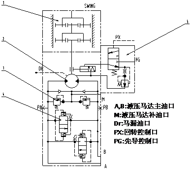 1 回轉減速機 2回轉馬達 3回轉制動溢流閥