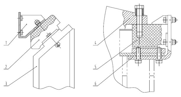 1、4-發動機支腿 2、5-減震墊 3、6-固定座