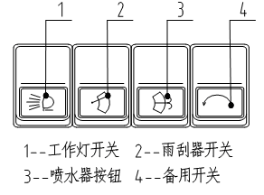 按下工作燈開關(guān)右側(cè),則動(dòng)臂左、右工作燈與平臺(tái)工作燈亮,按下開關(guān)左側(cè)以斷開工作燈。