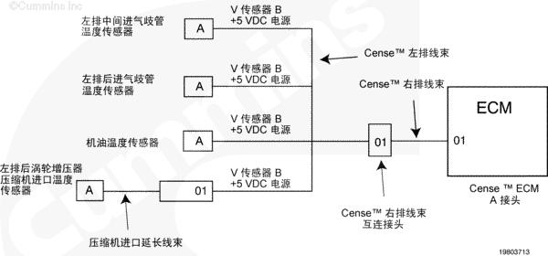 康明斯QSK78發動機V 傳感器 B +5 VDC 電源電路圖 |