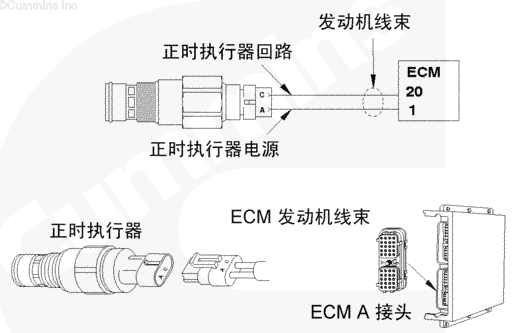 正時執行器電路圖向正時執行器提供電流。CM500 ECM 向正時執行器指派變動的電流量來控制噴油器正時壓力量。