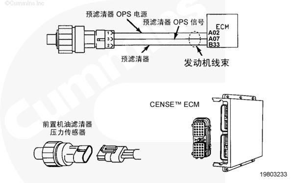 正時油軌壓力傳感器電路圖通過康明斯QSK78發動機線束向 CM500 ECM 提供正時油軌壓力傳感器信號。CM500 ECM 利用正時油軌壓力傳感器信號監測從控制閥體輸送到噴油器正時油腔的正時燃油壓力。